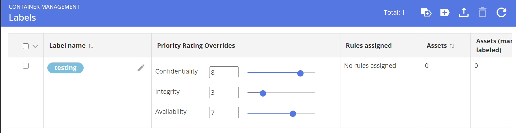 When an asset has multiple labels, it will be assigned the highest priority rating of its labels in each category, unless it has asset-level overrides.