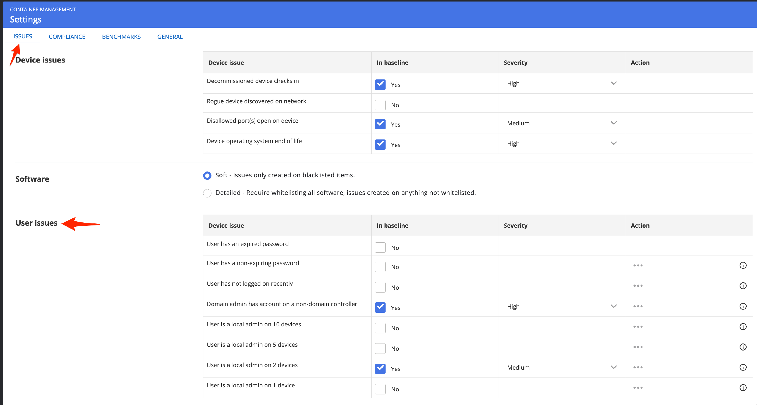 Nanitor administrators can define in which cases Nanitor will raise an issue of the type "User". Navigate to "Settings" in the "Organization Management" administration section of Nanitor. In the Issue tab you will find a section for User issues.