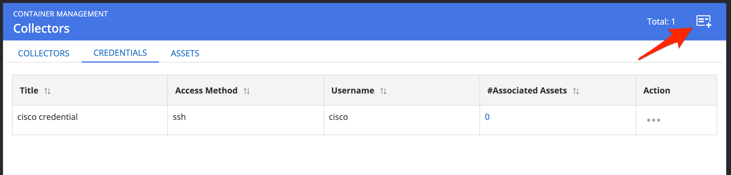 - Credentials. This is where you add the sets of usernames/passwords (credentials) used to log into the devices to collect information from.