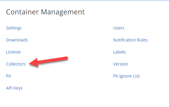 From the Nanitor administration menu under the organization, management selects Collectors to enter the area where you can add devices to your Nanitor instance