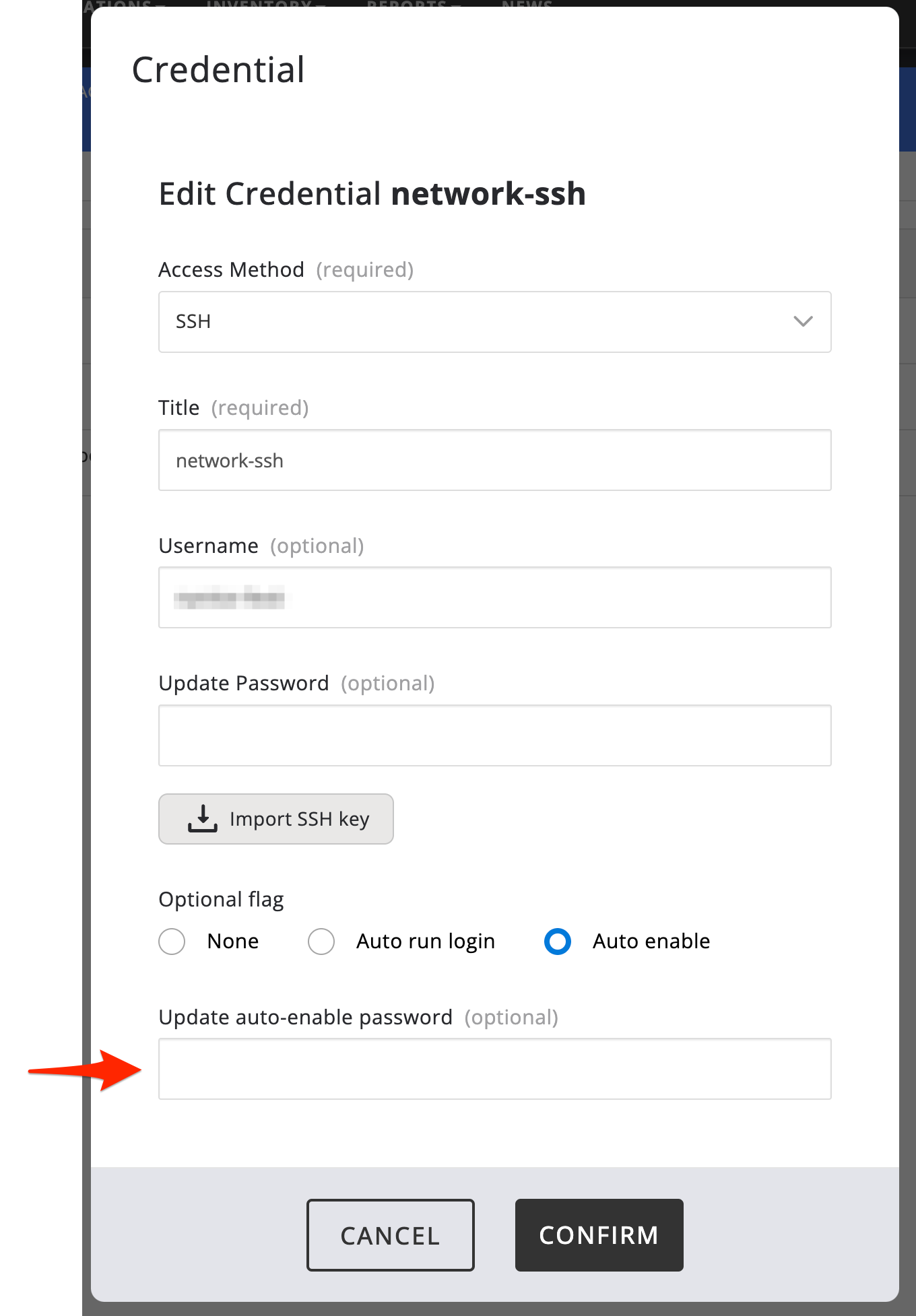 Some devices require that you either enter some sort of an enable mode or switch to a super user before you can issue privileged view commands. These sorts of privilege escalation tend to come with their own password. If the device you are configuring a credential for has this sort of requirement, make sure you select the "Auto Enable" radio button and enter the required password in the appropriate field.