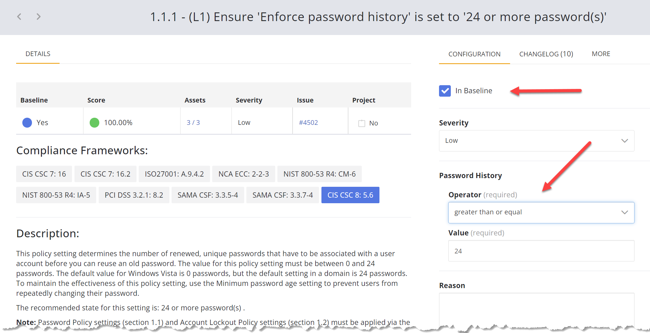 Our recommendation is to use our recommended out-of-the-box policy as a starting point and harden your systems to fulfill those policies, modifying the baseline as needed. Then going forward, we recommend going through the rich set of available checks and continuously review your baseline, then add checks that make sense for your improved security.