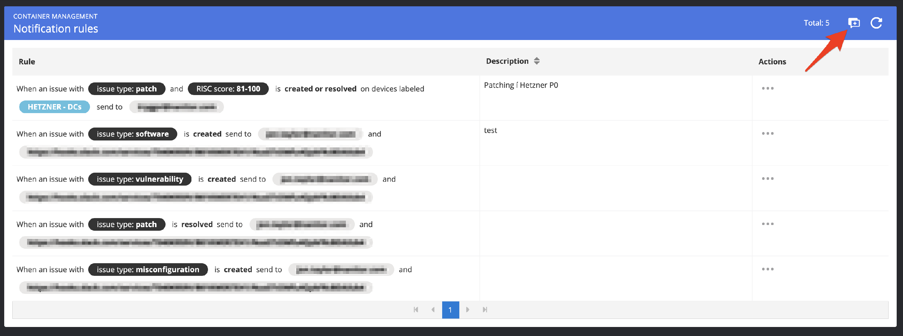 This will show you a list of active notification rules in your system. Click on the button top right to create a new notification rule