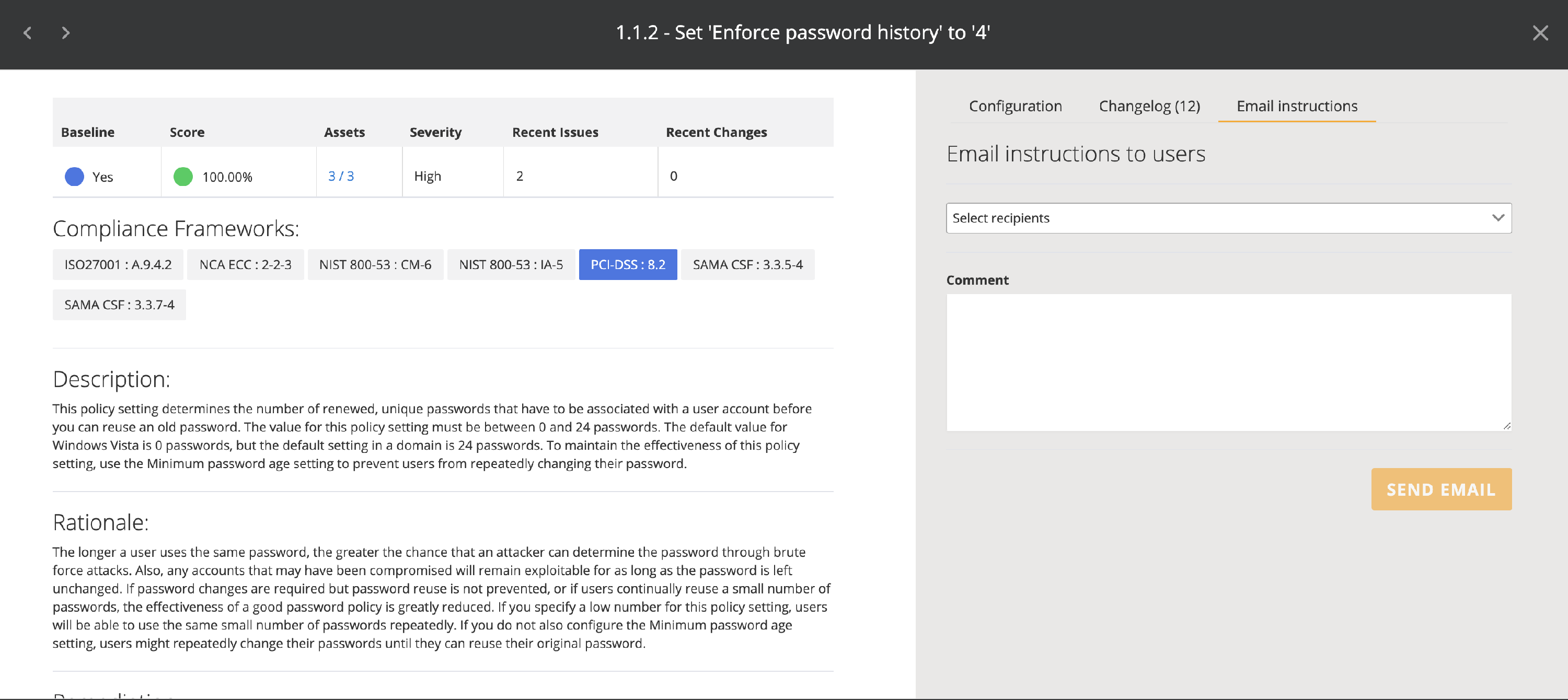 Nanitor supports sending email instructions for benchmark rules including remediation instructions and the status to one or multiple Nanitor user(s).
