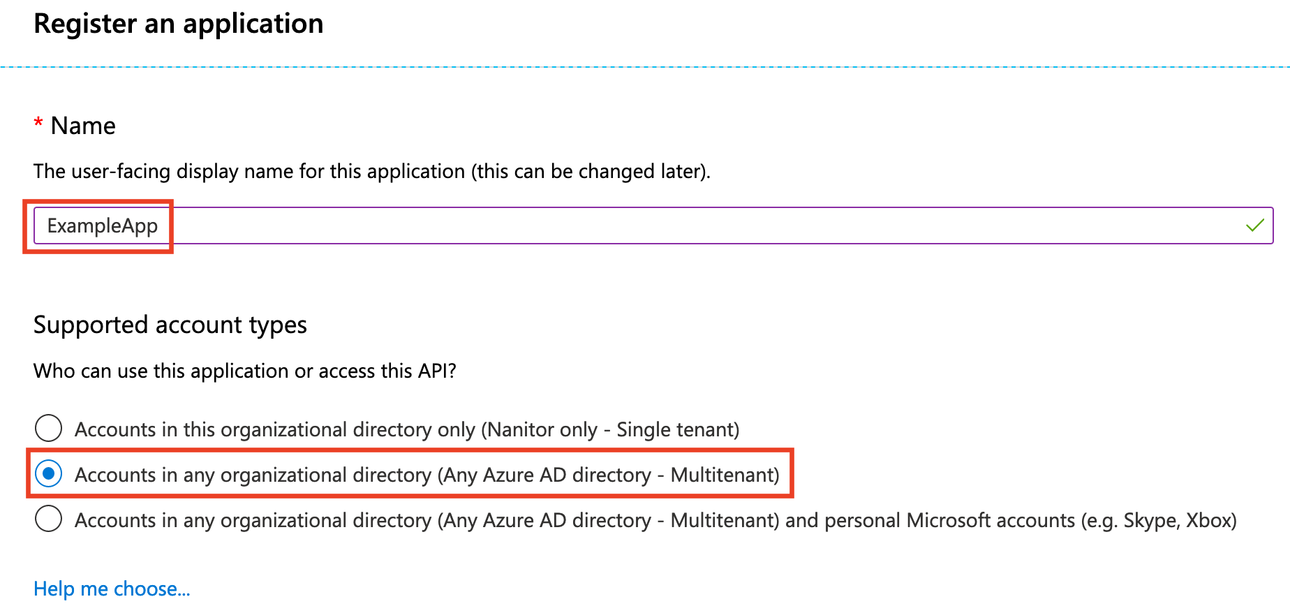 2. Under “Supported account types”, select “Accounts in any organizational directory (Any Azure AD directory - Multitenant)