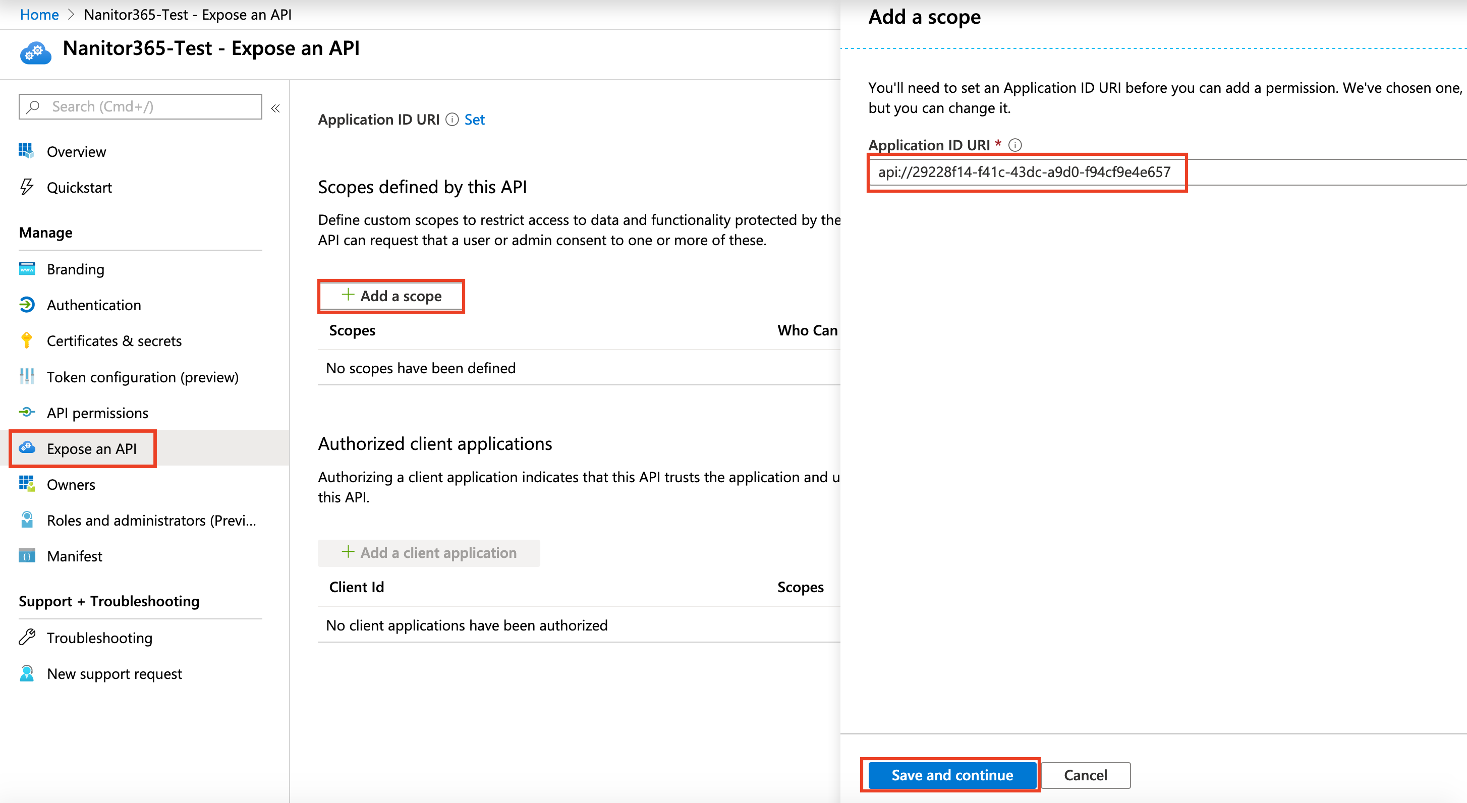 - The Application ID URI field should be automatically filled with the Application ID.
