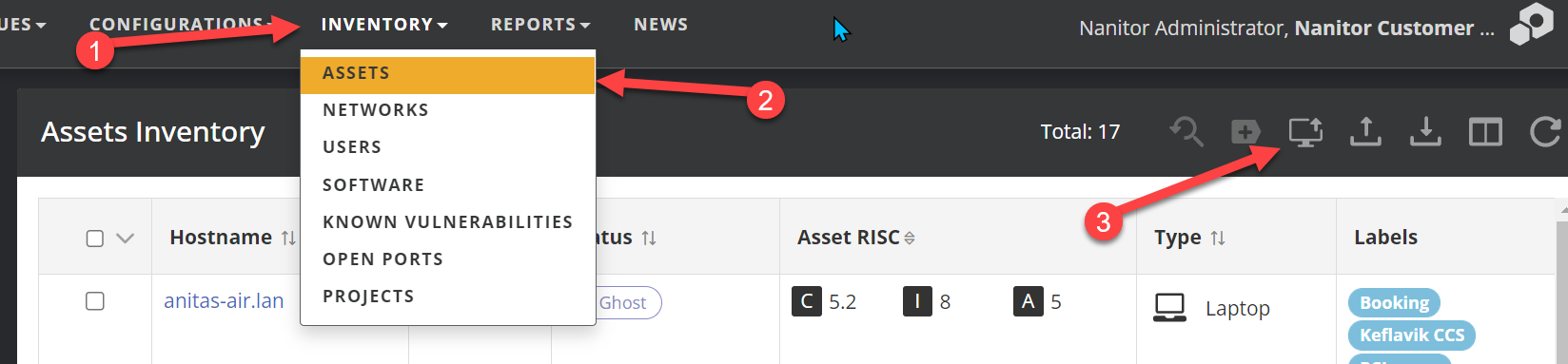 Upgrading the agent is done in the GUI from the Asset Inventory screen.