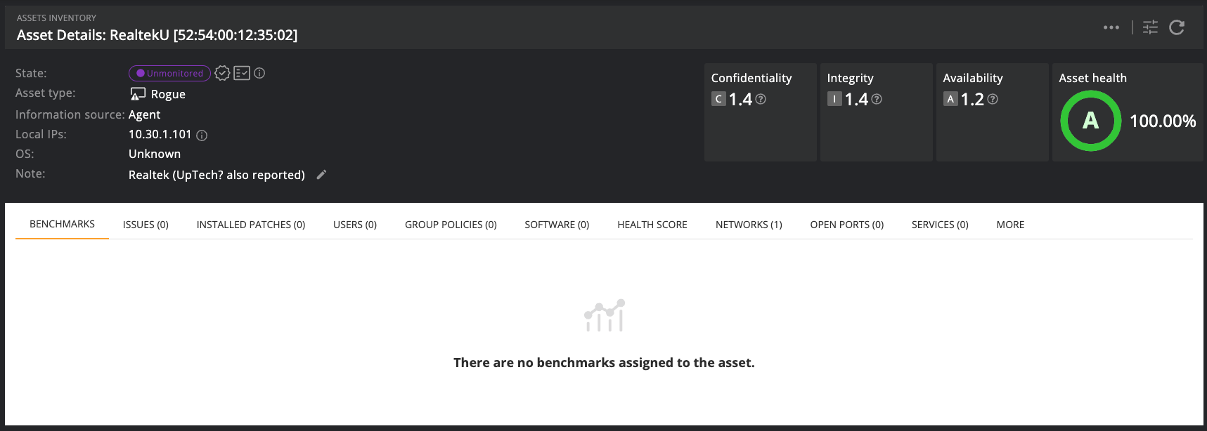 By default, unmonitored assets discovered through network discovery are added to Nanitor as rogue assets. However, not all unmonitored assets are necessarily rogue (office printers for example), and marking legitimate assets as such is not ideal.
