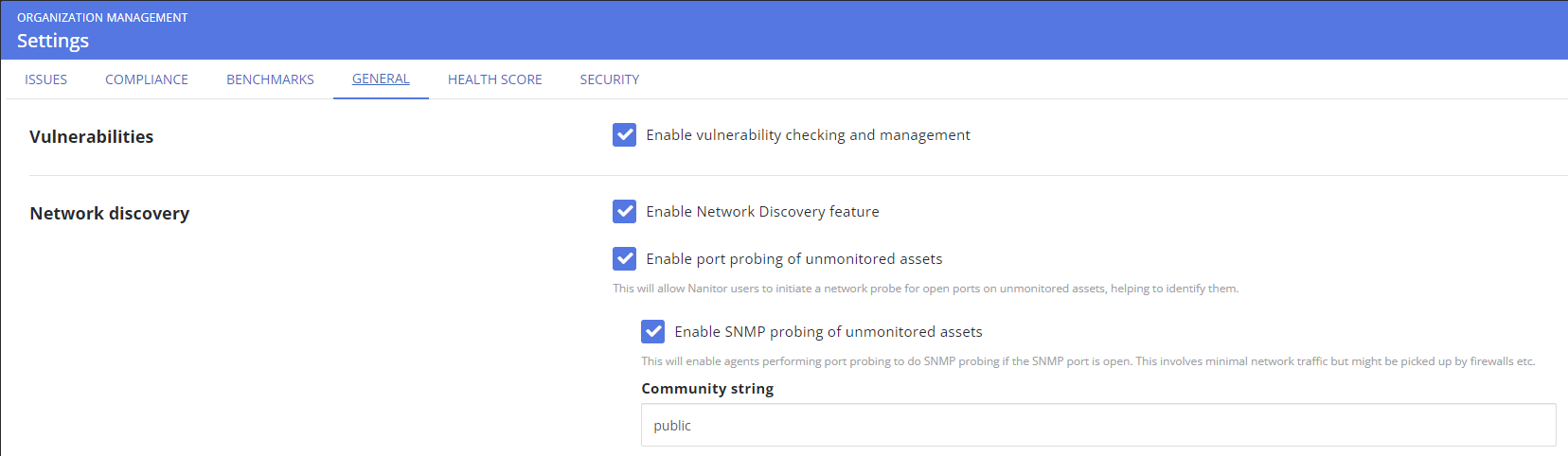 Please note that Nanitor uses SNMP v2 which passes unencrypted information. This functionality can be shut off in the general settings (see below).