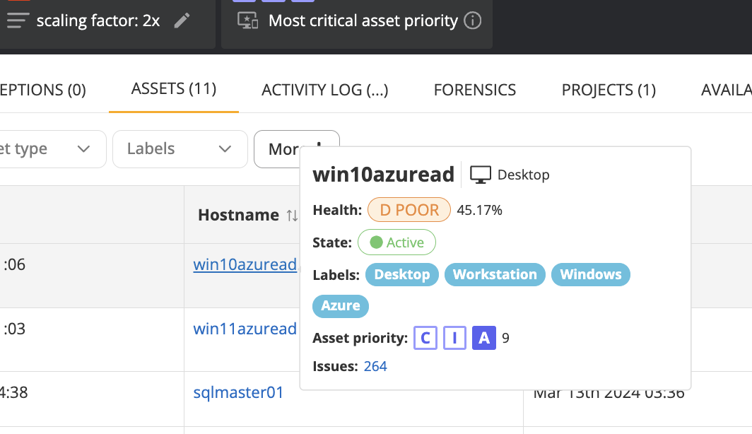 Assets now have an on-hover summary for quickly getting information. This is intuitive and helps get quickly getting context without clicking and losing context.