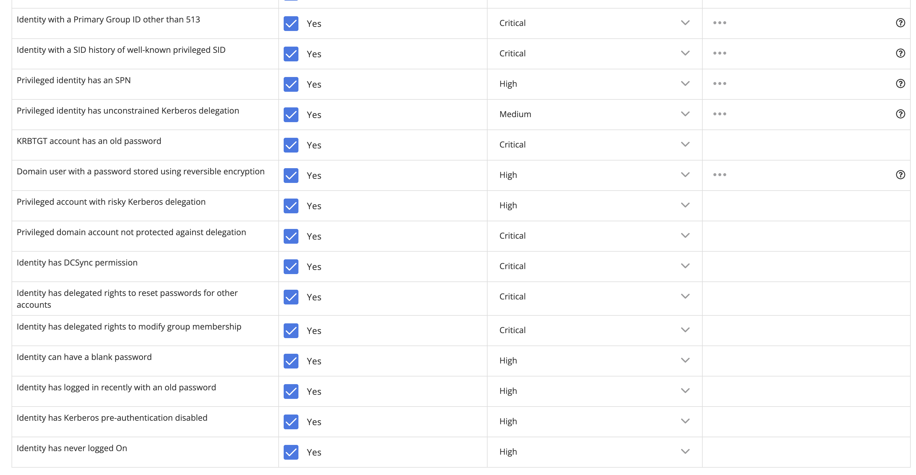 Nanitor now has 23 configurable identity security checks that can be configured into baseline, including a number of critical AD identity security issues.