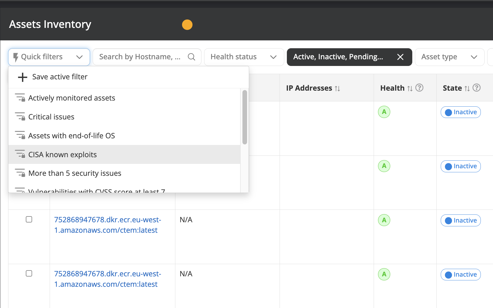 Asset Inventory: Filter Errors: Addressed errors that could appear when using certain filters in the Asset Inventory for instances with a large number of assets.