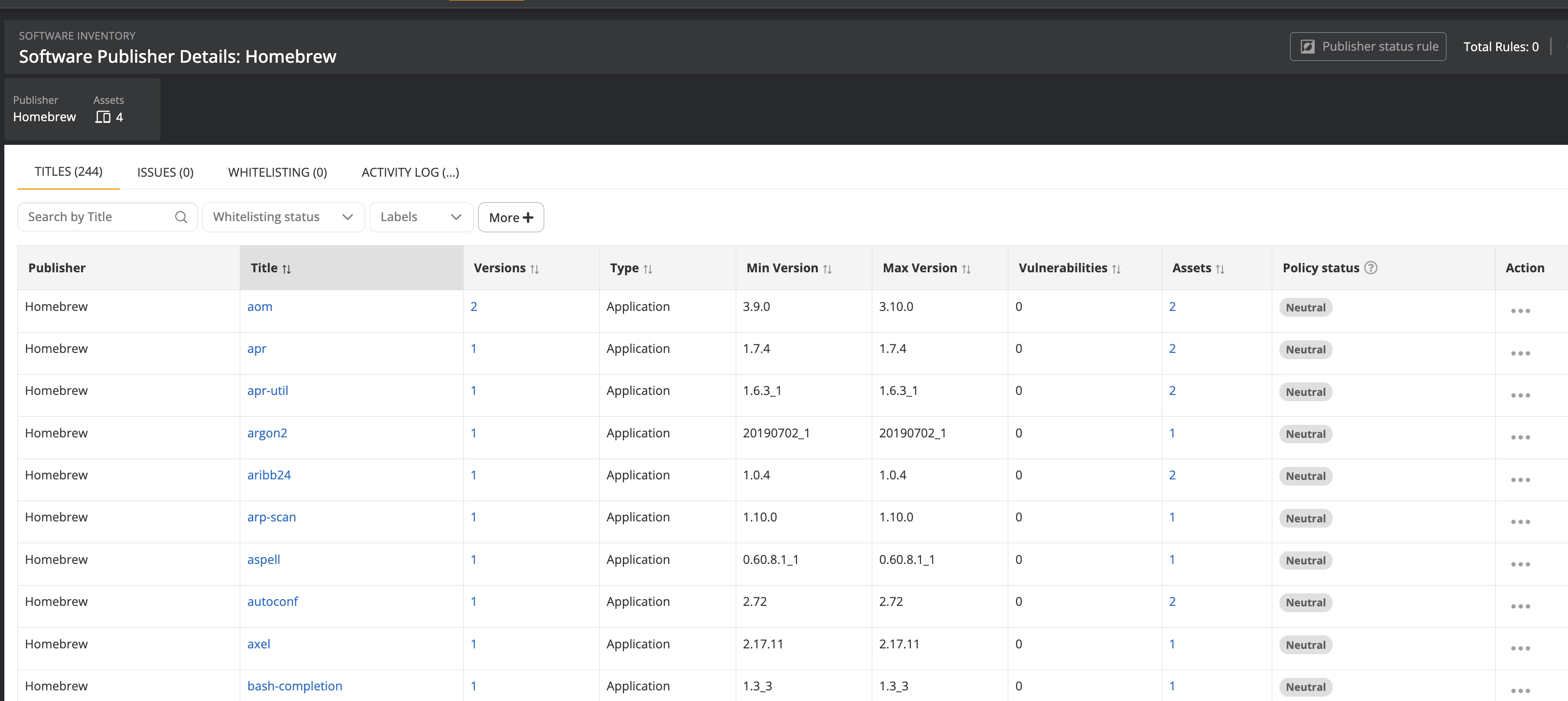 - Track Software Installed via Homebrew: Nanitor now captures software installed through Homebrew on MacOS. This ensures that applications installed via this popular package manager are properly represented in the software inventory.