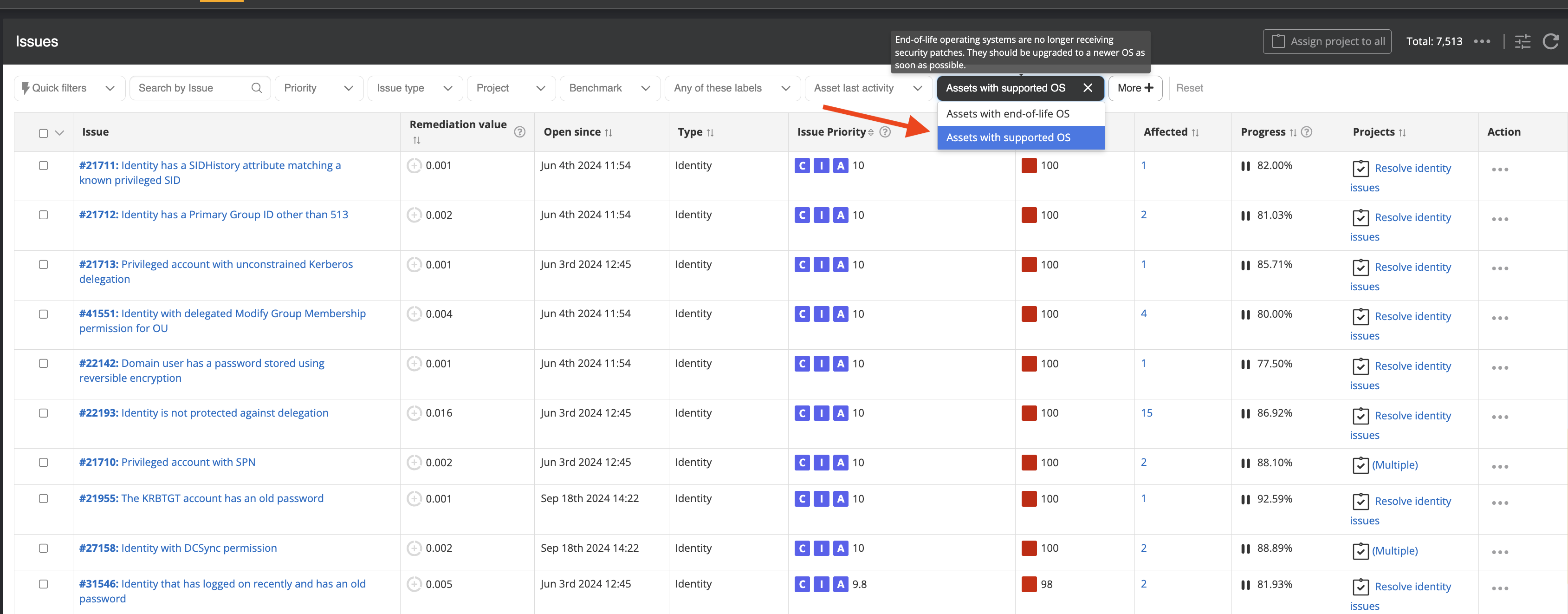 End-of-Life (EOL) devices are often a low priority for patching and remediation, as they may no longer be maintained. Conversely, users may also need to focus specifically on EOL devices to plan upgrades or migrations. The new EOL device filter provides the ability to include or exclude these devices from issue lists, giving users more control over how they view and act on issues.