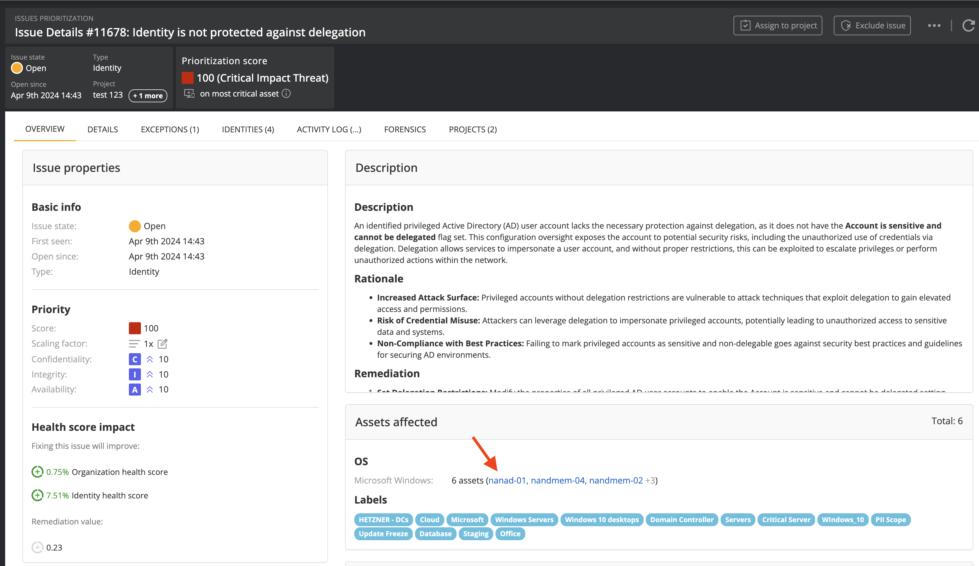 Fixed Issue Type Text in PDF Reports: Identity issues shown in the asset PDF report have been corrected to show "Identity" as their issue type rather than "User" (legacy).