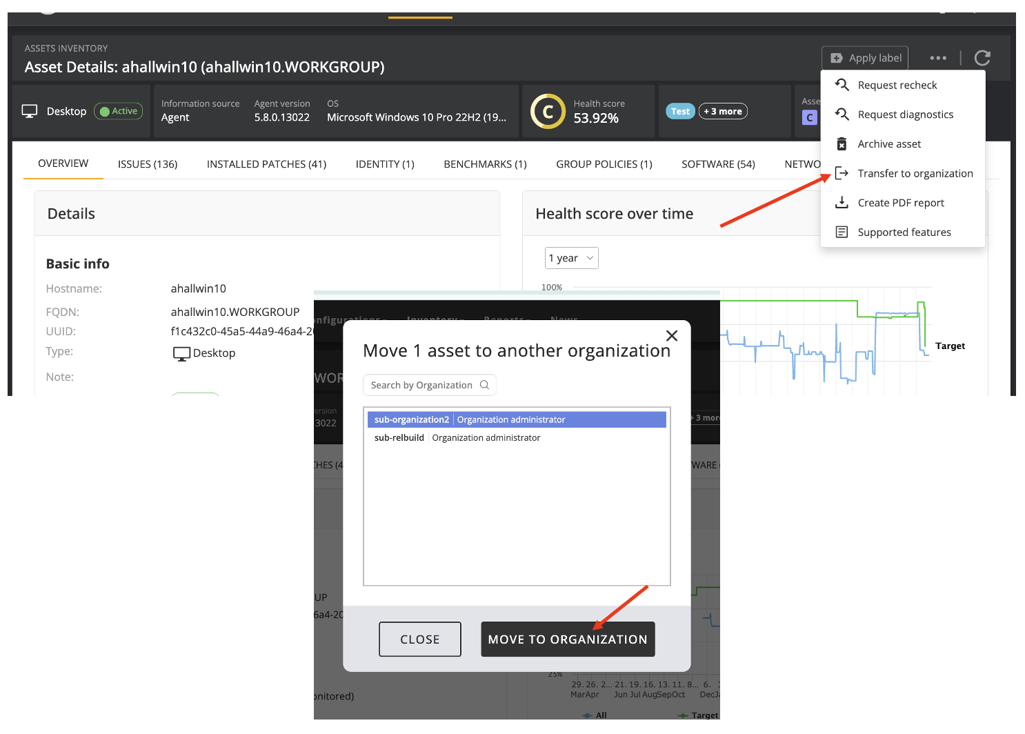Why it matters: This feature improves operational efficiency for administrators, reducing manual effort and potential disruptions. It is especially beneficial for MSPs and IT teams managing assets in dynamic or evolving environments or addressing mistakes where an asset was signed up in the wrong organization.