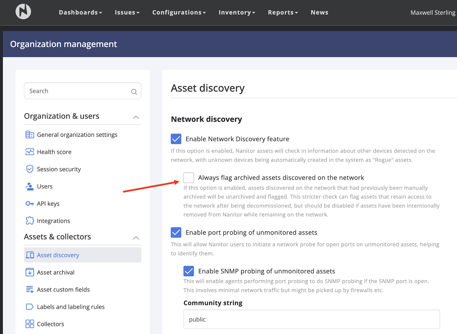To address user feedback and improve clarity, we’ve added a new setting: "Always flag archived assets discovered on the network." This setting gives users control over how archived devices are handled when they are detected on the network after being manually archived.